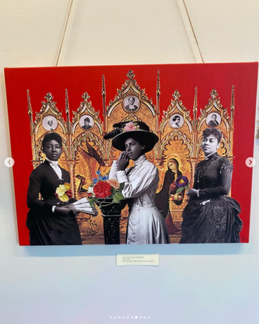 Allegories, Renditions and A Small Nation of Women is a visual art and public history exhibition which examines African American Women’s History, Christianity, and the citizenship project of the turn of the 19th century. This collage art exhibition is placed in conversation with a public history exhibition, curated by Harris and examines the way in which African American portraits can reveal the machinations of Black and Mixed Race women seeking to elevate their social stature in the 19th and early 20th centuries. Contemporary visual art is paired with historical artifacts, aiding viewers as they visualize what the archives could not hold and the particular way in which these women sought full citizenship through identity formation practices in post-emancipation U.S. In both secular and sacred spaces, innovation and freedom erupted out of the principals and practices of a Christian-American identity. They existed as Black renditions of constructions of Womanhood that depended on their contorted existence, and they were a small burgeoning nation of women.